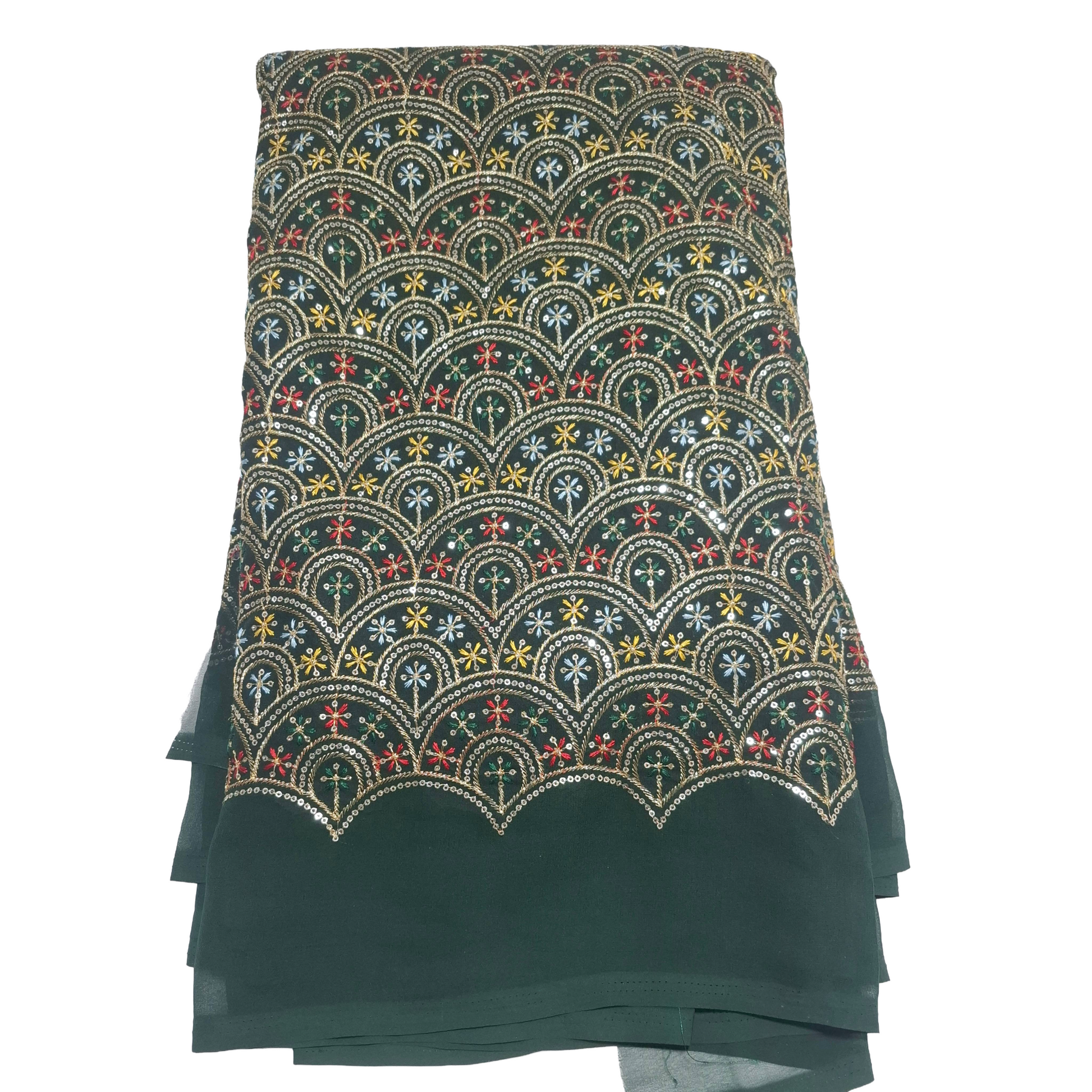 Designer bottle green Georgette Fabric | Multicolour Sequence & Thread Work