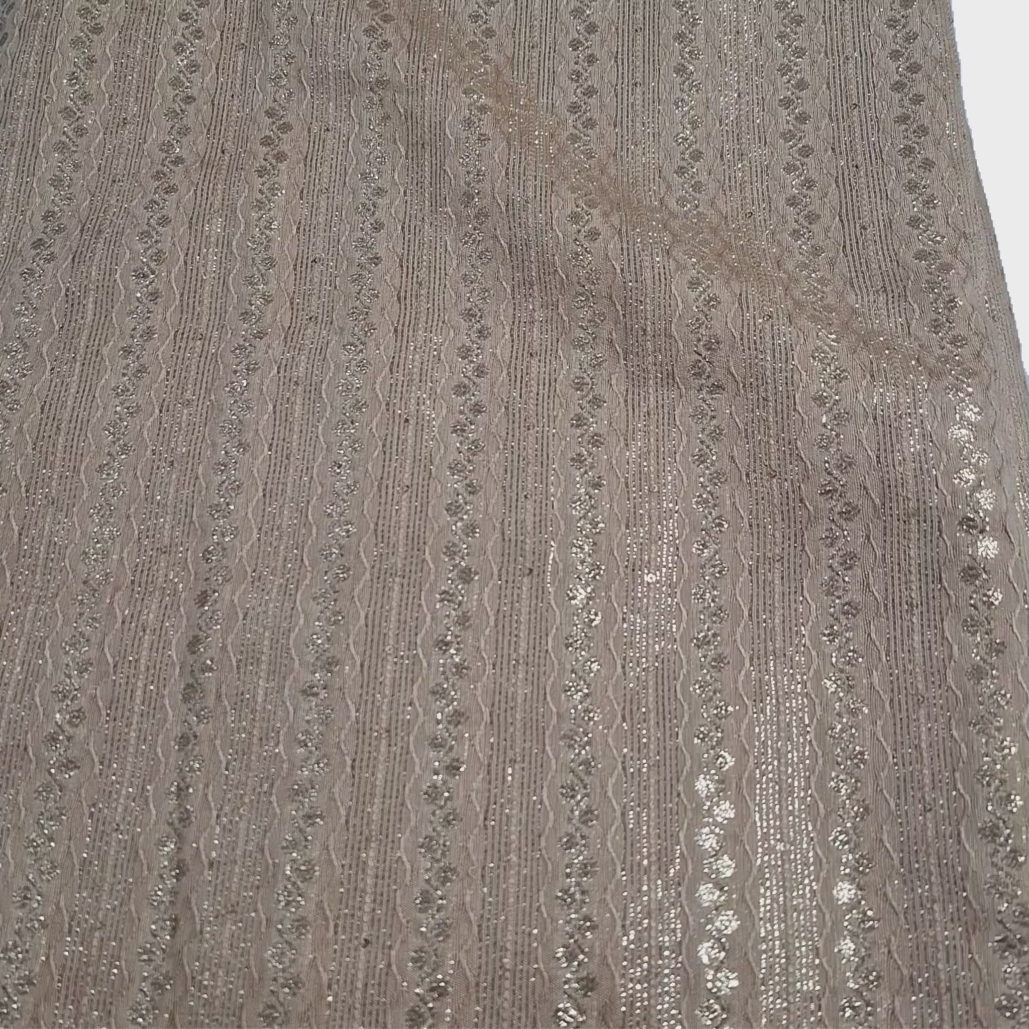 Premium gold Chanderi silk fabric featuring rich golden stripe weaving that gives a luxurious shine and festive look. Lightweight, soft, and beautifully textured—perfect for suits, kurtis, designer dupattas, lehenga detailing, blouses, and partywear outfits. Its pure gold shade adds a royal and timeless elegance to any attire.