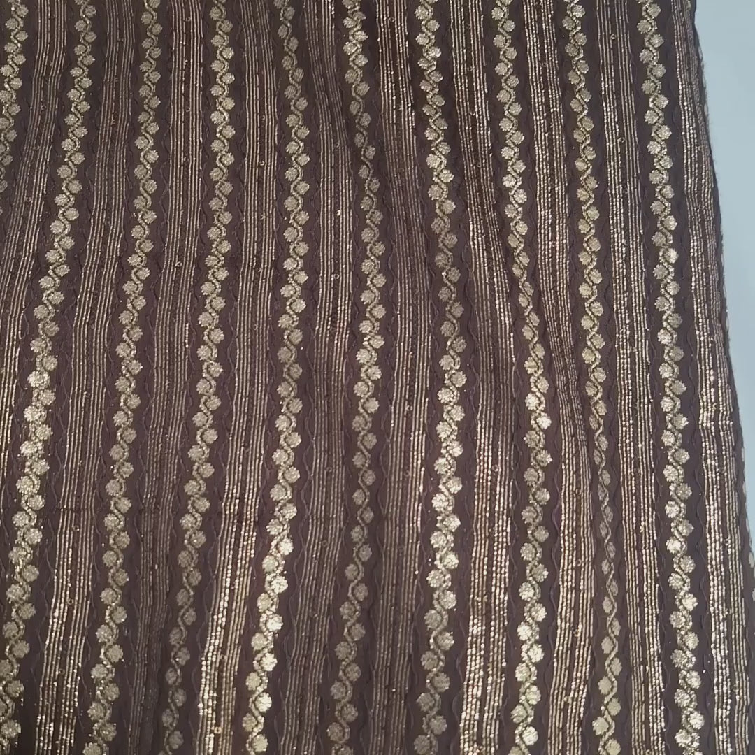 This premium Chanderi Silk Fabric in rich Coffee Brown features beautiful golden woven stripes, giving it a classy and festive look. The fabric is soft, lightweight, and flows smoothly—perfect for creating suits, sarees, gowns, lehengas, kurtis, and designer outfits.